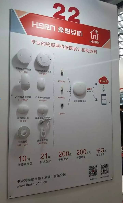 China Security & Fire IOT Sensing showcased its “Horn Cloud Platform”, which supports wireless connectivity. Motion sensors and door sensors are connected to an alarm box; the alarm signals generated by these sensors are transmitted to a cloud terminal via WiFi. The information is processed on the cloud and transmitted to the user’s smartphone app. Connectivity with smart home systems is also available.