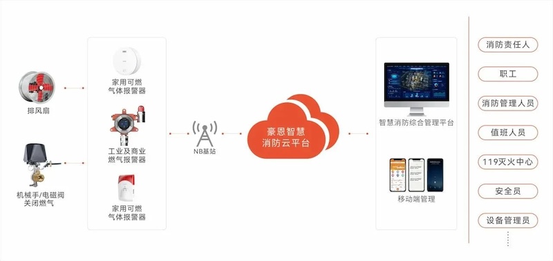 豪恩可燃氣體報警系統(tǒng)可實時監(jiān)測天然氣、液化石油氣、氫氣、異丁烷、一氧化碳等多種可燃氣體泄漏,并現(xiàn)場聯(lián)動控制和遠程提醒用戶,實現(xiàn)火災(zāi)隱患快速處理。