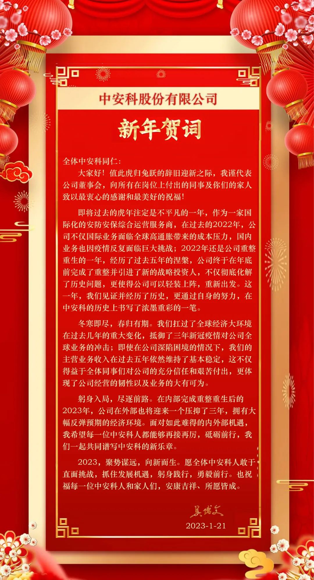 中安科股份有限公司——新年賀詞
