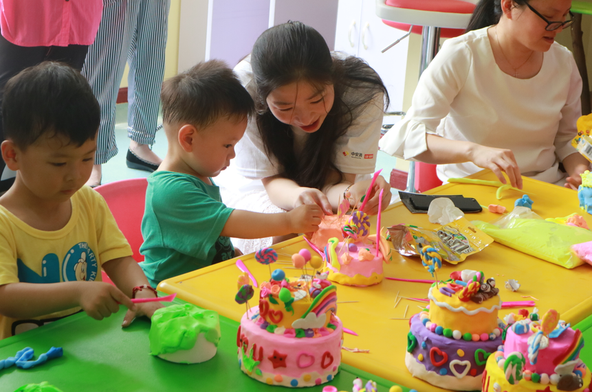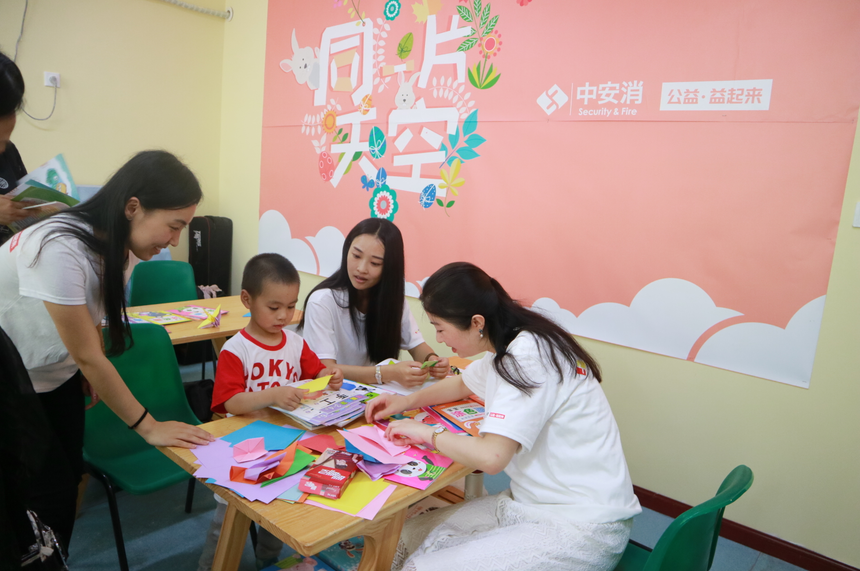 中安科愛心團(tuán)隊的志愿者們陪孩子們做各種手工活動