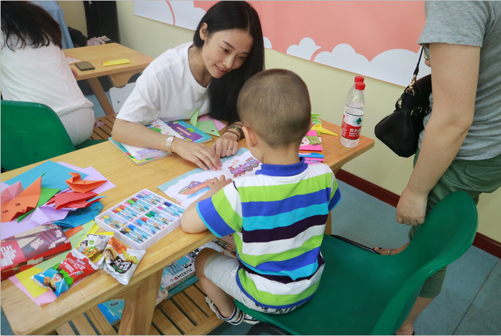 雖與志愿者們素未謀面,孩子們卻并不排斥,在他們的耐心引導(dǎo)下,漸漸專注于手中的手工活。有的孩子還對志愿者產(chǎn)生了親近感,臨走時給了一個意外的擁抱。