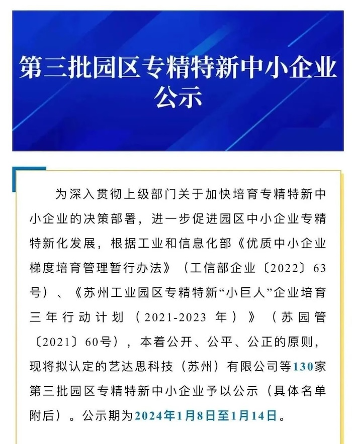 中安科子公司中科智能成功入選蘇州工業(yè)園區(qū)專精特新中小企業(yè)