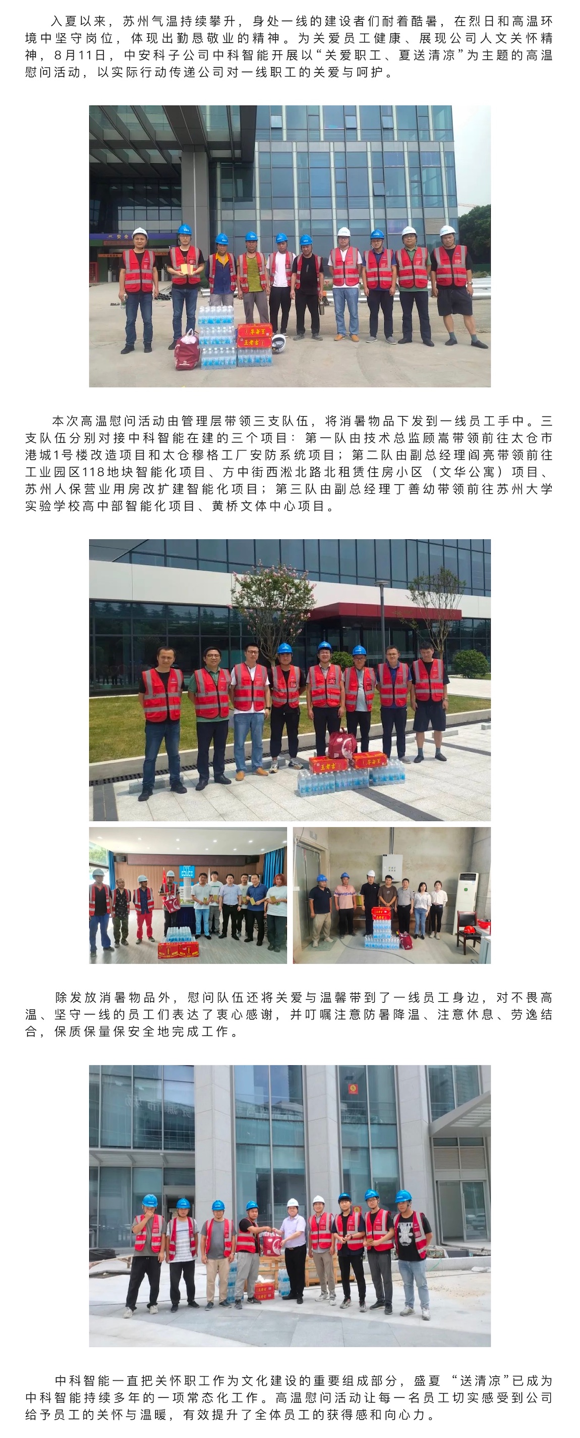 情系一線“送清涼” | 中安科子公司中科智能開展高溫慰問(wèn)活動(dòng)