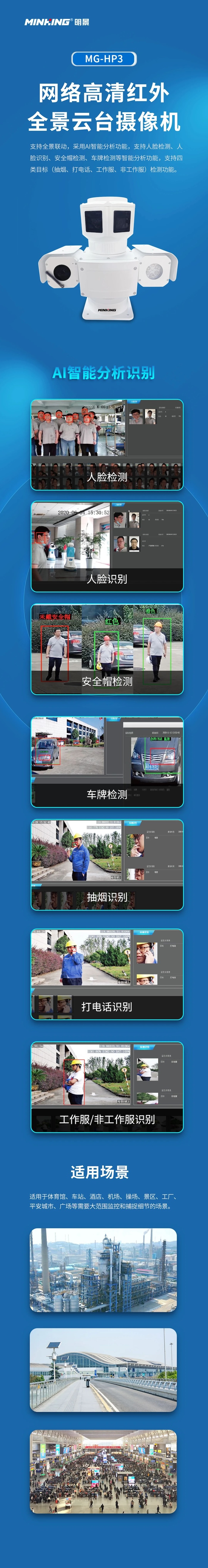 明景此次獲獎的360度全景4K智能高清5G車載系統(tǒng)(型號:MG-HP3),支持全景聯(lián)動,采用AI智能分析功能,支持人臉檢測、人臉識別、安全帽檢測、車牌檢測等智能分析功能,支持四類目標(biāo)(抽煙、打電話、工作服、非工作服)檢測功能。該產(chǎn)品適用于體育館、車站、酒店、機(jī)場、操場、景區(qū)、工廠、平安城市、廣場等需要大范圍監(jiān)控和捕捉細(xì)節(jié)的場景。